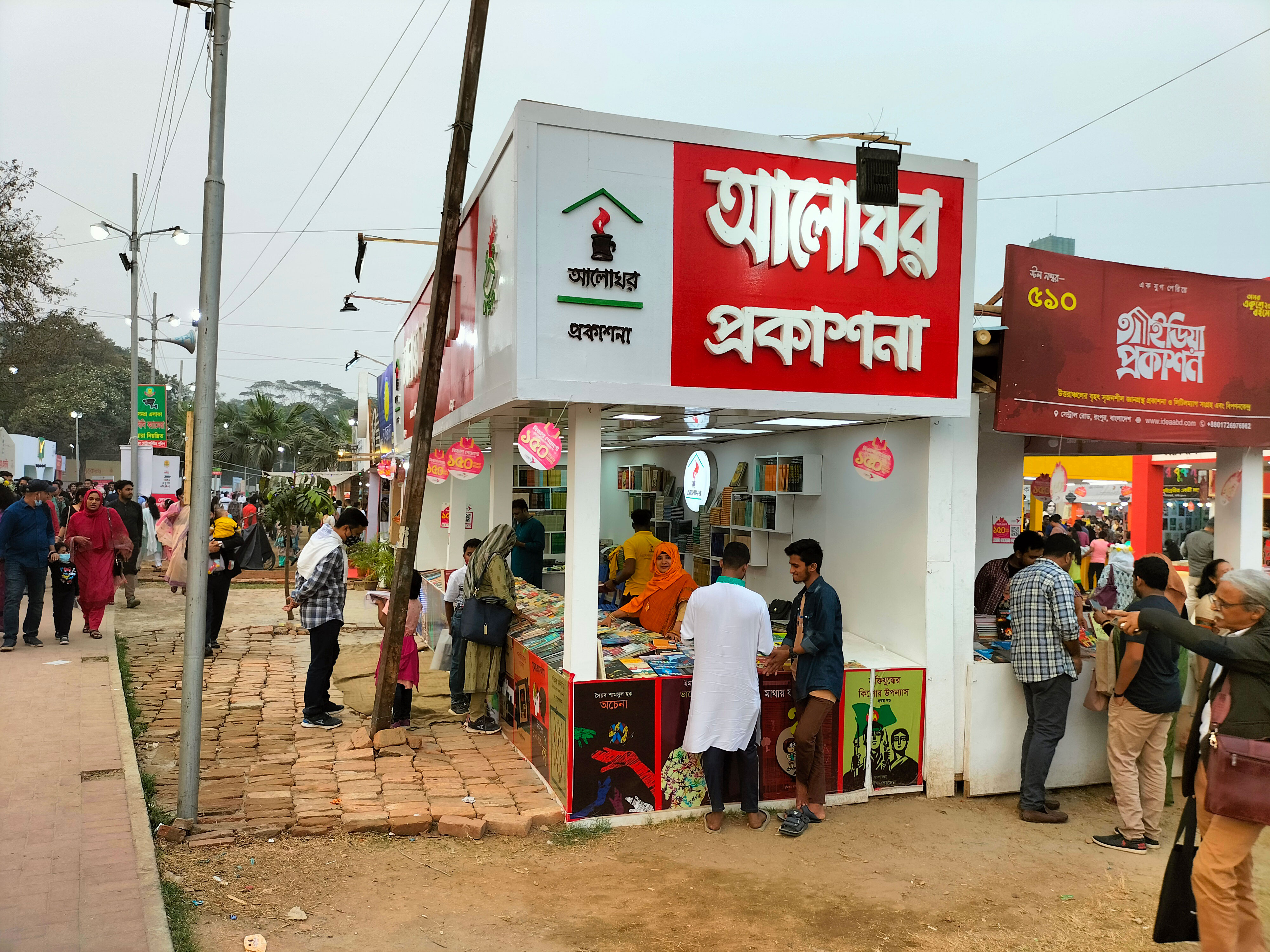 একুশে বইমেলা ২০২৩ আলোঘর প্রকাশনার স্টল ভিজিট করছে পাঠকরা।